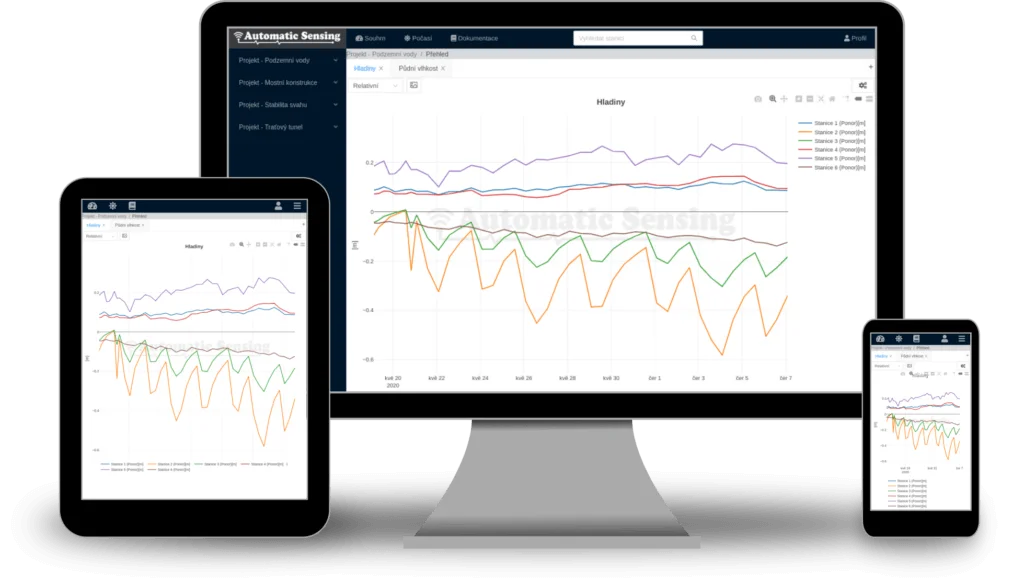 The measuring system for remote data transmission from Automatic Sensing is currently largely deployed on the D8 motorway in the Czech Republic for the purpose of monitoring a problematic landslide area near the village of Dobkovičky. Our customer uses a wide range of measuring equipment here, which includes groundwater level measurement, tiltmeters, inclinometers, Geokon, dynamometers, flow meters... and other elements.